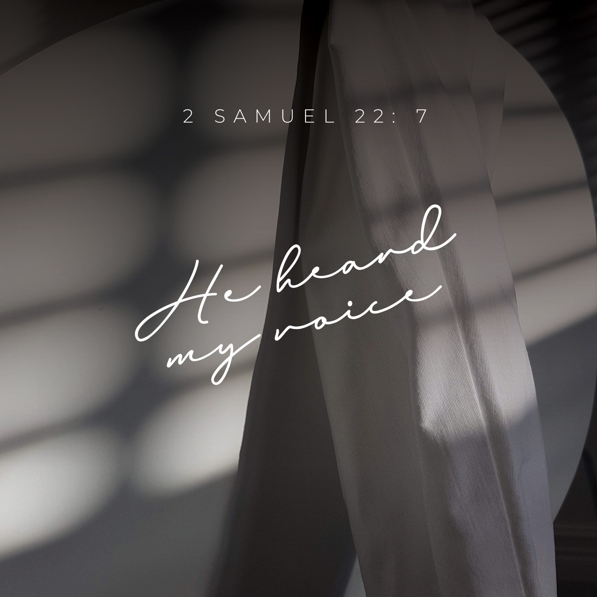 2 Samuel 22: 7 “In my distress I called to the Lord; I called out to my God. From his temple he heard my voice my cry came to his ears…